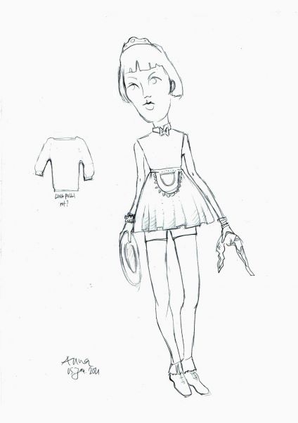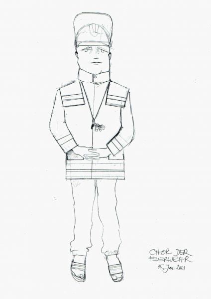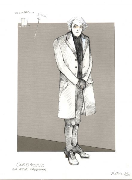 (Kostümbild & Adaption eines Bühnenentwurfes von Tom Grasshoff)